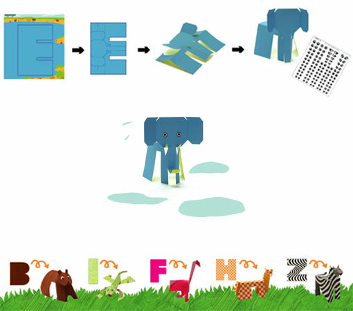 折って組み合わせるだけで、AからZまでいろんな動物が出来上がります。