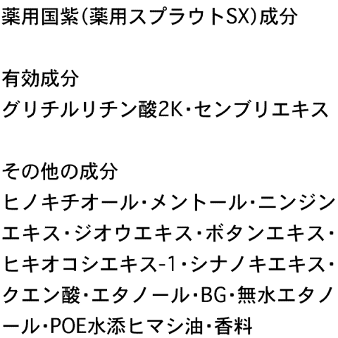 黒紫は、グリチルリチン酸ジカリウムとセンブリエキスを主剤とし、頭皮の炎症を防ぎ、毛根部の血行を促進させ、健康で美しい毛髪の発育に効果を発揮します。