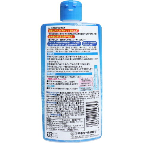 ギフトサービスについて 楽天国際配送対象店舗 (海外配送) Rakuten International Shippingフマキラー株式会社個装サイズ:77X175X45mm個装重量:約347g内容量:300mLケースサイズ:33.3X18.7X19.1cmケース重量:約5.7kg【発売元:フマキラー】【品名】上ばき・シューズ用合成洗剤【液性】中性【成分】界面活性剤(12%、高級アルコール系(非イオン)、ジアルキルジメチルアンモニウム塩、第4級アンモニウム塩系)、有機酸塩、安定化剤【用途】水洗いができる靴(上ばき、運動靴、スニーカー、合成皮革、金具のついた靴等)【使用方法】(1)あらかじめドロ汚れや、靴の中の砂等を落とします。