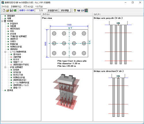 英語出力版では、杭基礎、直接基礎、ケーソン、地中連続壁、鋼管矢板基礎および液状化の判定、計5種類の計算結果を英語で出力します。
