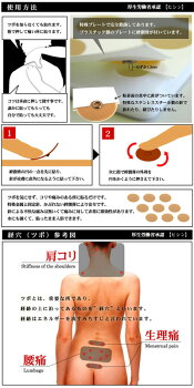 本品は、難しい「ツボ」を気にせずコリ、または痛みのある場所を指で押して一番感じる局所に貼るだけで効果がでます。